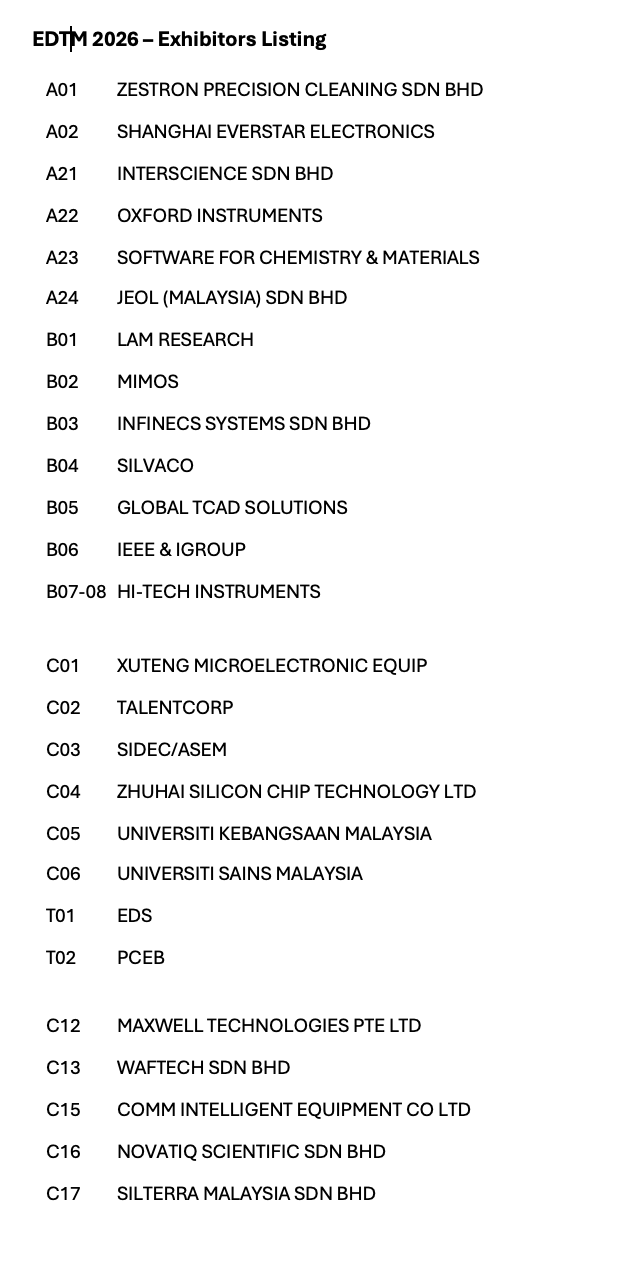 EDTM 2026 offers an excellent platform for companies and organizations to showcase products, services, and innovations, and to connect with leading researchers, engineers, and decision-makers in the fields of electron devices and semiconductor manufacturing.